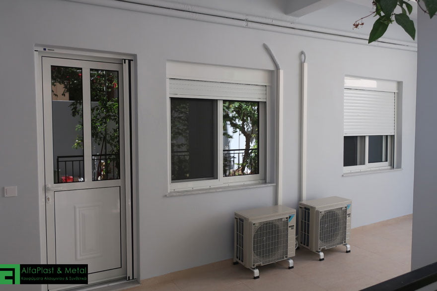 Τα αλουμίνια κατασκευάσθηκαν σε λευκό χρώμα και τοποθετήθηκαν ρολά και σήτες..